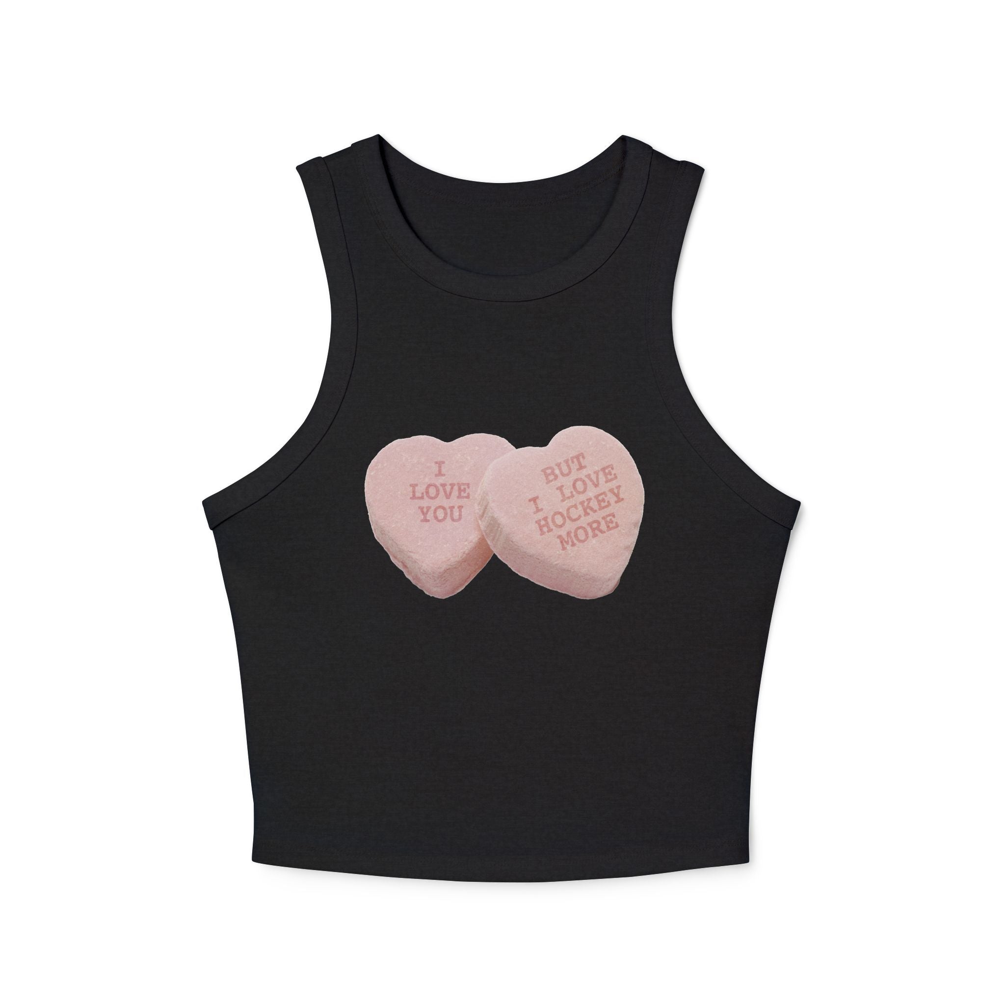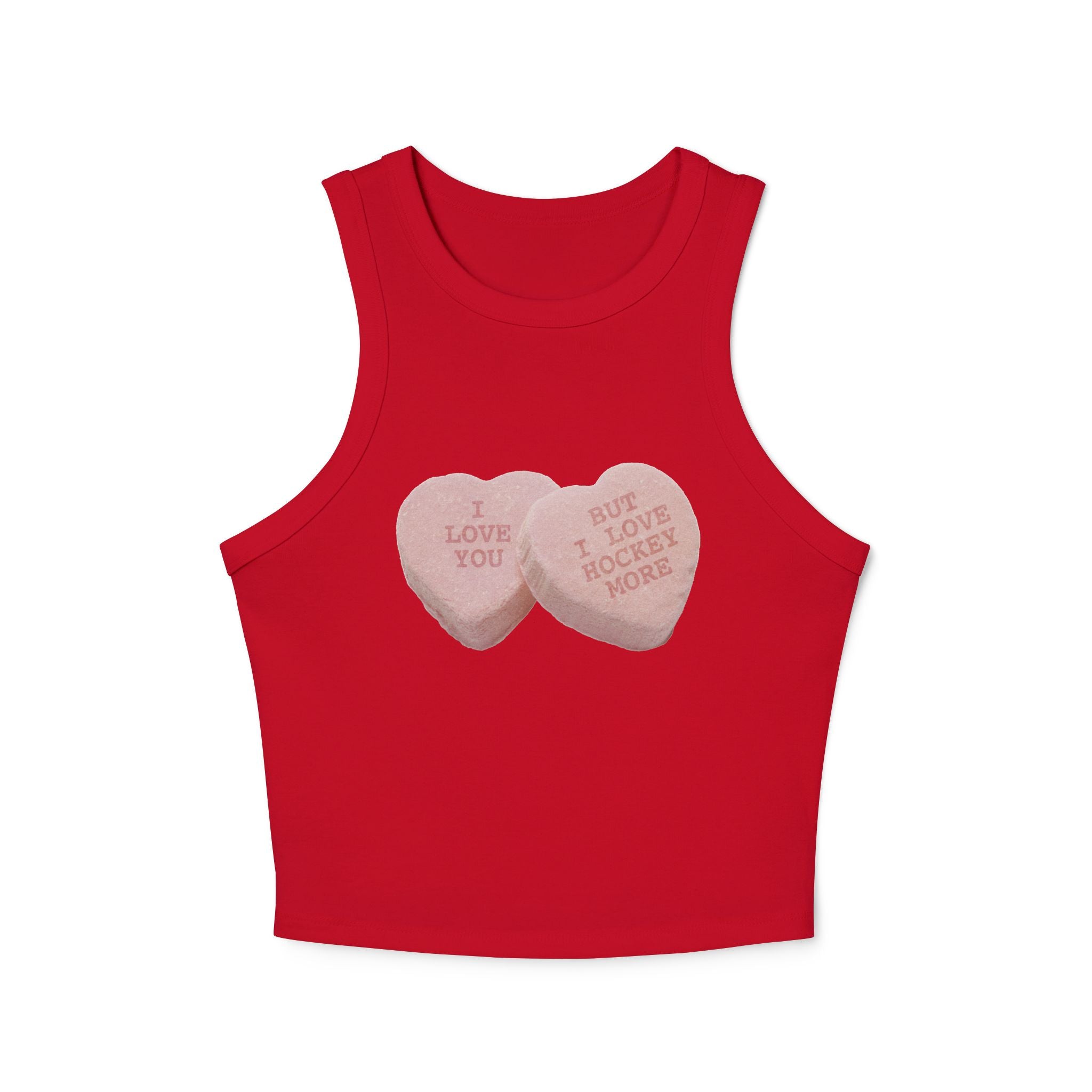 fitted stretch, mid length racer back tank top